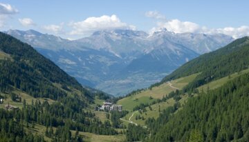 Talansicht mit Bergen, Wald und einem kleinen Dorf | © www.wikipedia.com