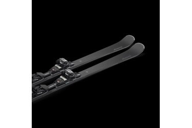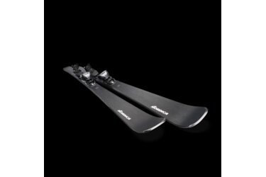 A pair of Nordica Belle SL skis with bindings on a black background.