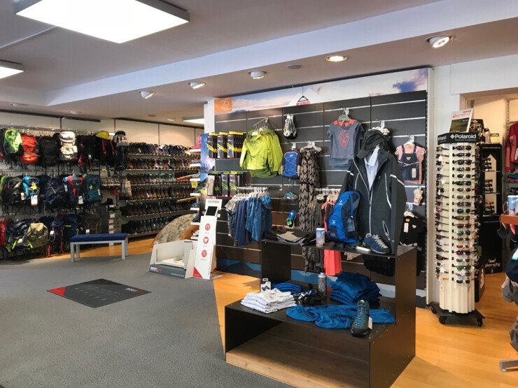 Innenansicht eines Sportgeschäfts mit Ausrüstung