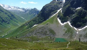 Paysage de montagne avec lac et sommets enneigés | © https://www.flickr.com/photos/77295011@N06/