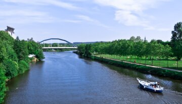 Paysage fluvial avec pont et bateau. | © https://www.flickr.com/photos/yakobusan/
