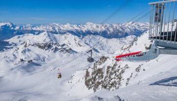 Berglandschaft mit Seilbahn und schneebedeckten Gipfeln. | © Florian Bouvet-Fournier