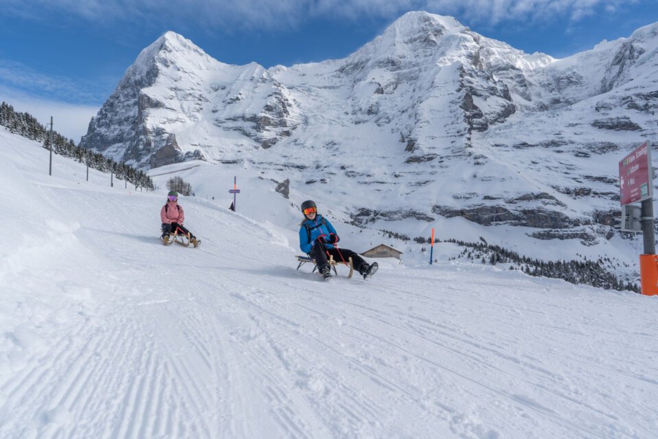 Auch begeisterten Schlittelfans wird in Wengen einiges geboten, denn in der ganzen Jungfrau Region befinden sich rund 50 Kilometer an Schlittelwegen. Während einige den Fox Run neben der Laubhornstrecke nach Wengen bevorzugen, wagen sich andere aufs Faulhorn, um anschliessend die längste Abfahrt der Welt erleben zu können. Und falls du es nicht schaffen solltest, die Region tagsüber mit dem Schlitten zu erkunden, kannst du dich nachts auch am Jungfrau Eiger Run versuchen.