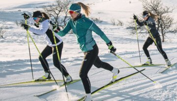 Langlaufhandschuhe sollten nicht zu dick sein, um Bewegungsfreiheit zu garantieren und ein Überhitzen zu vermeiden. Ein Stirnband oder eine Haube sowie ein dünner Schal oder Schlauchtuch schützen deinen Kopf vor Wind. Bei Sonnenschein ist eine Sonnenbrille auf der Loipe unverzichtbar.