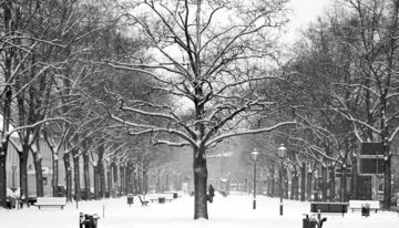 Schneebedeckter Park mit kahlen Bäumen und Bänken. | © https://www.flickr.com/photos/mwichary/