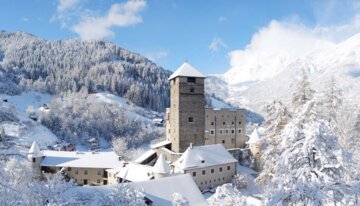 Schloss inmitten verschneiter Landschaft | © Archiv TVB TirolWest / Rupert Gapp